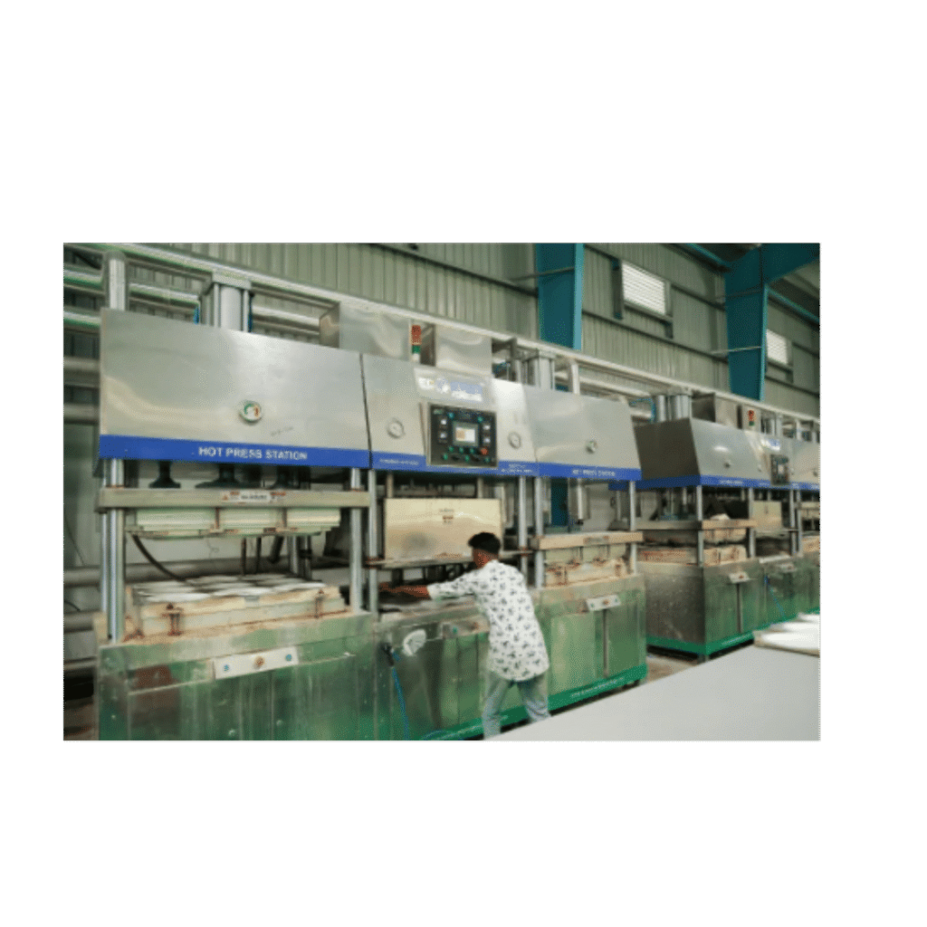 - Plate Molding: The pulp is shaped into durable, disposable plates.