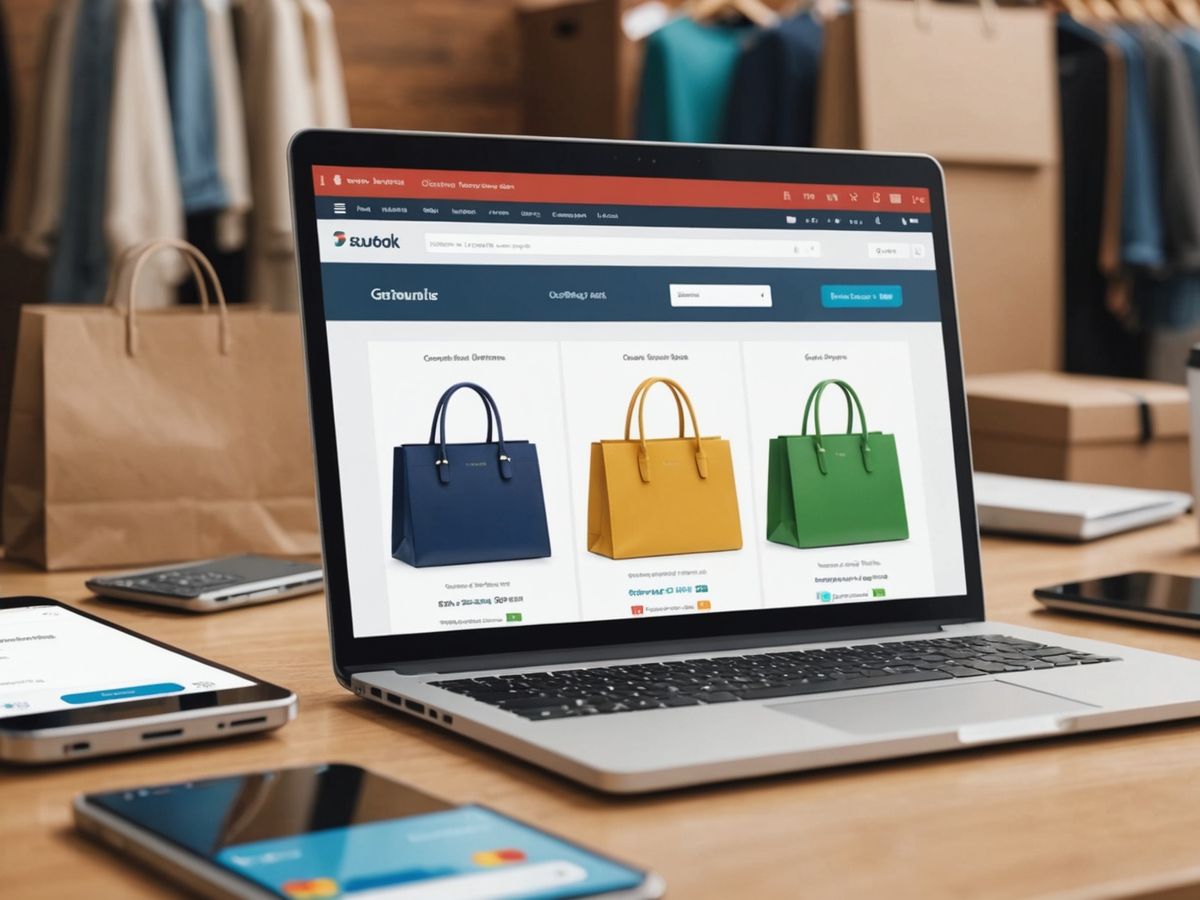 Laptop with e-commerce site and shopping items